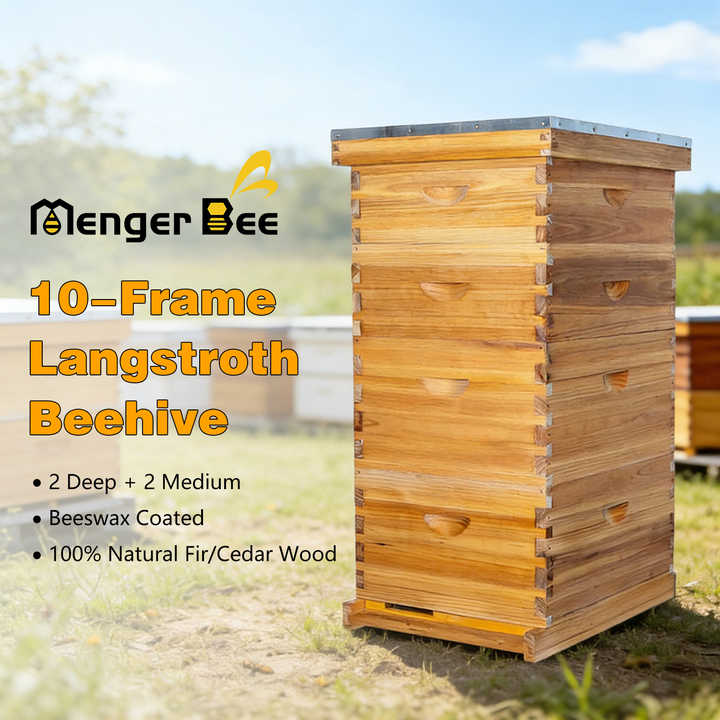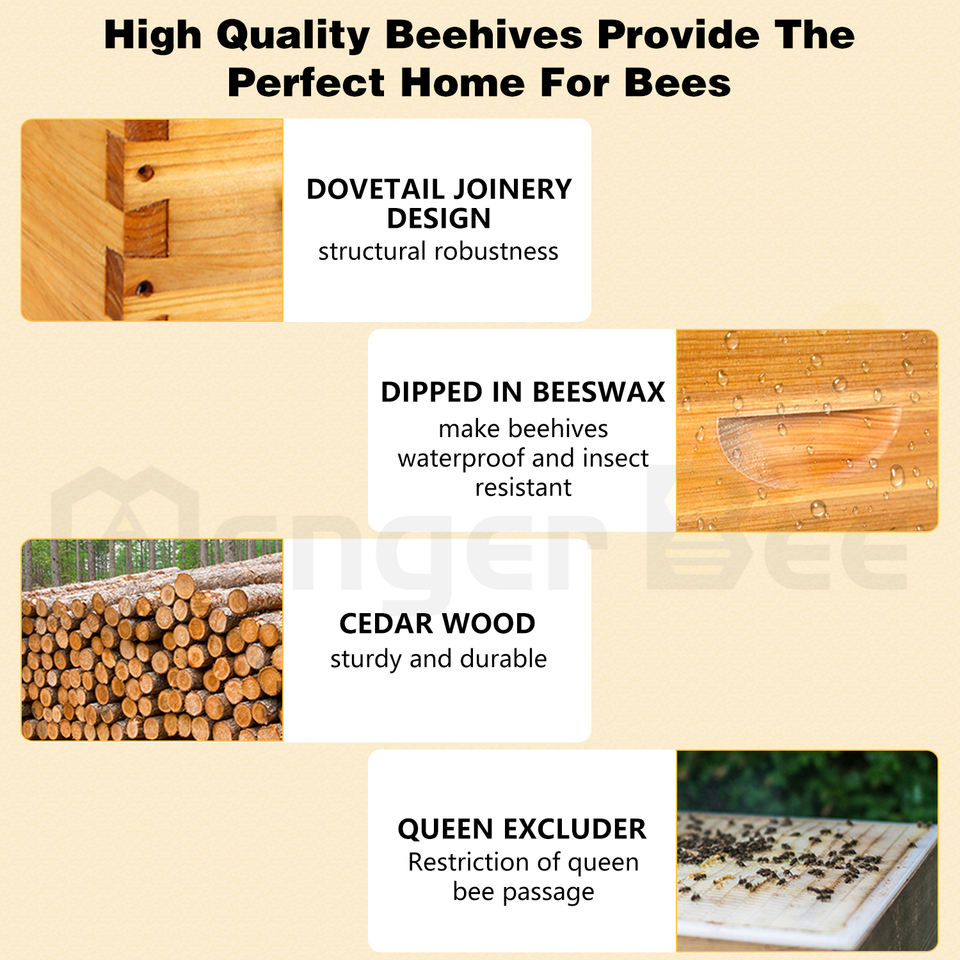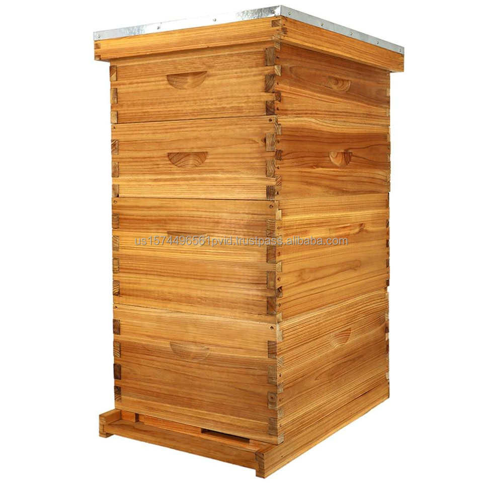 Kit complet de ruche Langstroth 10 cadres, 2 boîtes profondes + 2 boîtes moyennes, en bois de cèdre enduit de cire d'abeille, avec cadres