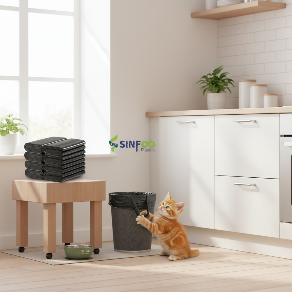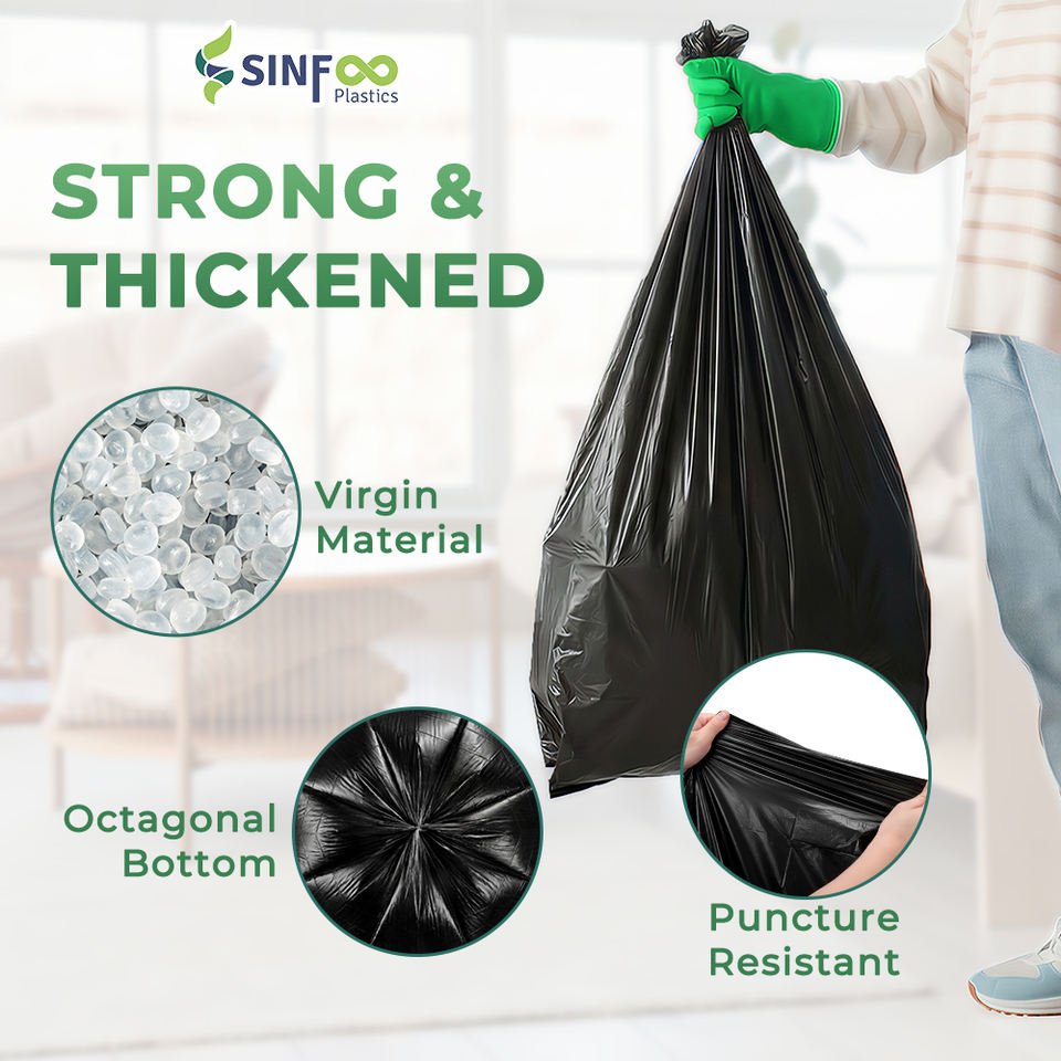 Sacs poubelles de 10 gallons pour usage domestique, sacs poubelles en plastique noir épais pour la maison, le bureau, la salle de bain, le papier, le polystyrène