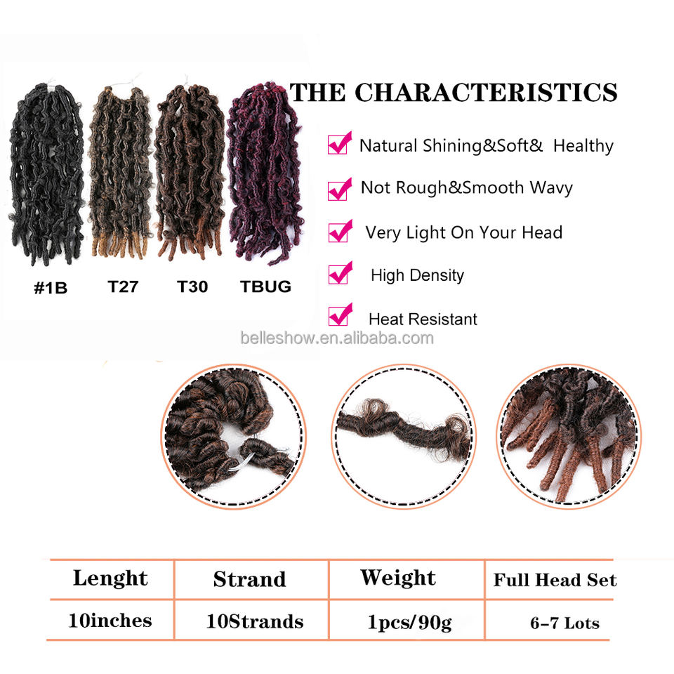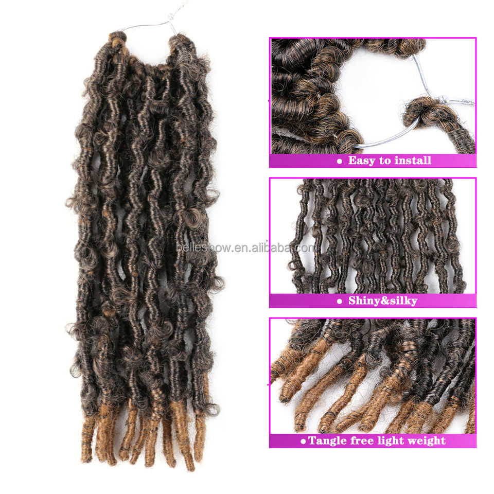 Type:Extension de cheveux de perruque synthétique, Papillon locs cheveux crotchet crochet perruque serrures tresses bob avec couleur
