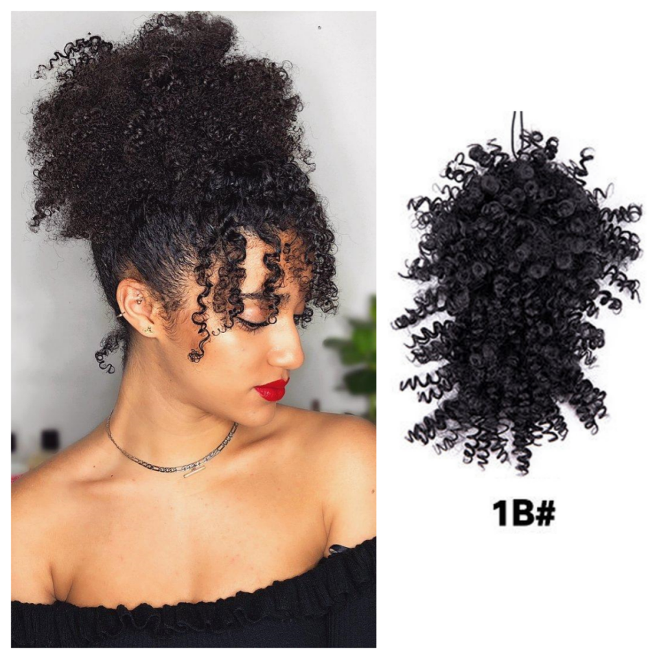 Type de cheveux:Chignon Afro Puff Faux Bouclé Effet Décontracté avec Frange - Queue de Cheval