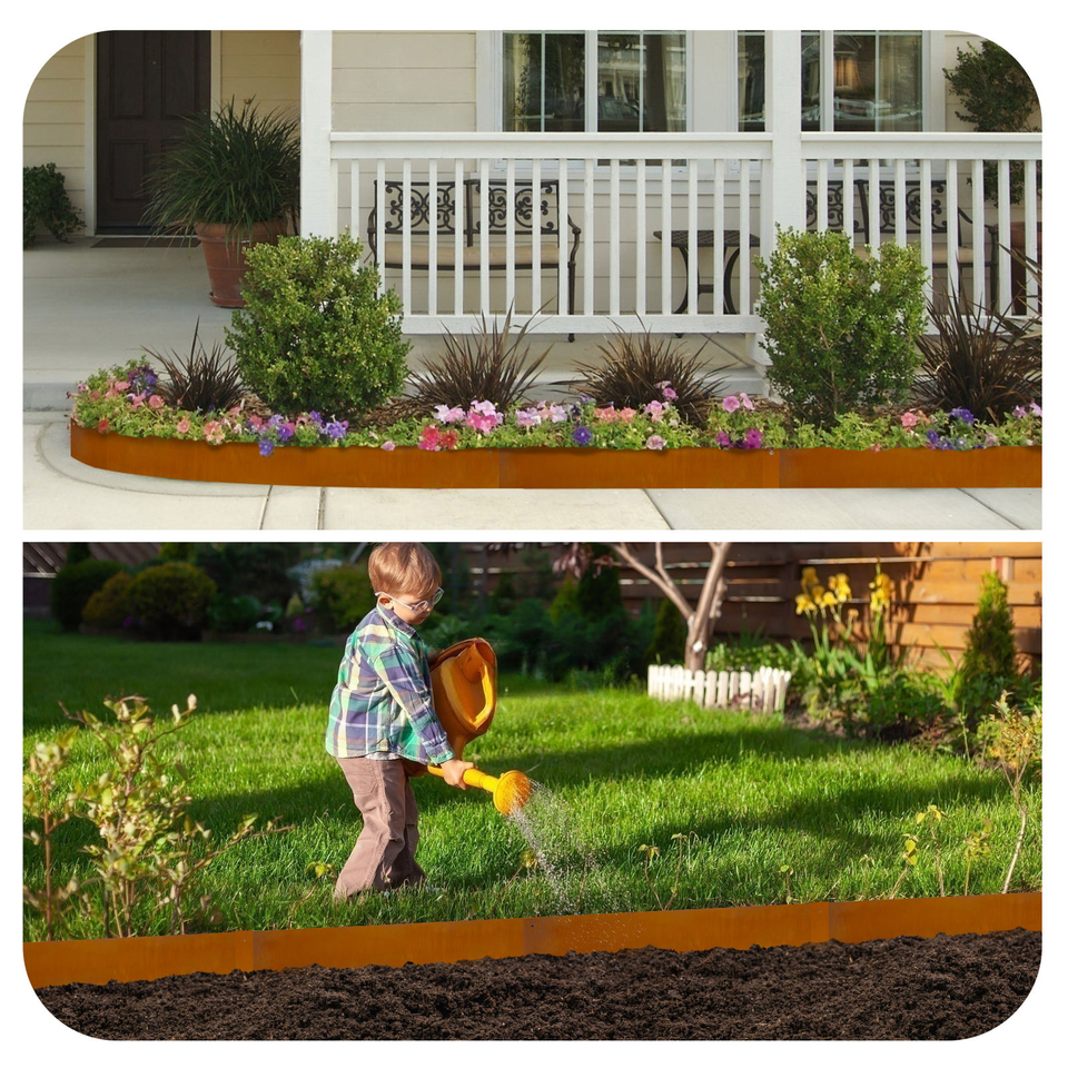 Bordure de jardin en acier Corten de 10 pouces, style Art déco, haute barrière, en métal recyclé, taille personnalisable pour parterres de fleurs extérieurs