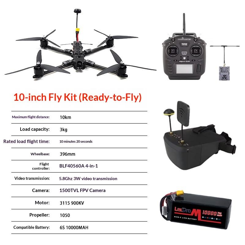Quadricoptère de course FPV 10 pouces Combo 5-en-1 FPV-1000-5IN1 Charge utile 3KG 5.8G 3W VTX ELRS 915 RTF