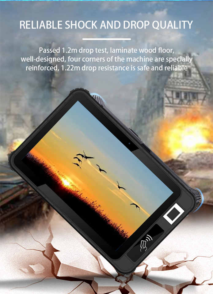 Tablette robuste d'empreintes digitales de 10 pouces 1280P Tablette à écran tactile capacitif de 10 points 4 + 64 Go Wifi NFC BT Tablette robuste