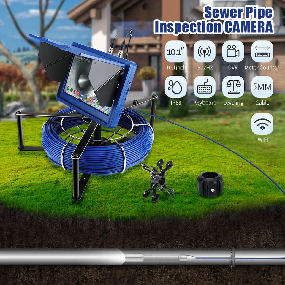 Caméra d'inspection de canalisation 10 pouces IPS 7mm 50M câble IP68 23mm auto-nivelante 512HZ localisateur 1080P CMOS endoscope de canalisation d'égout