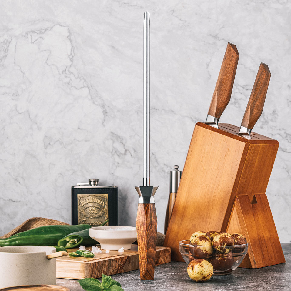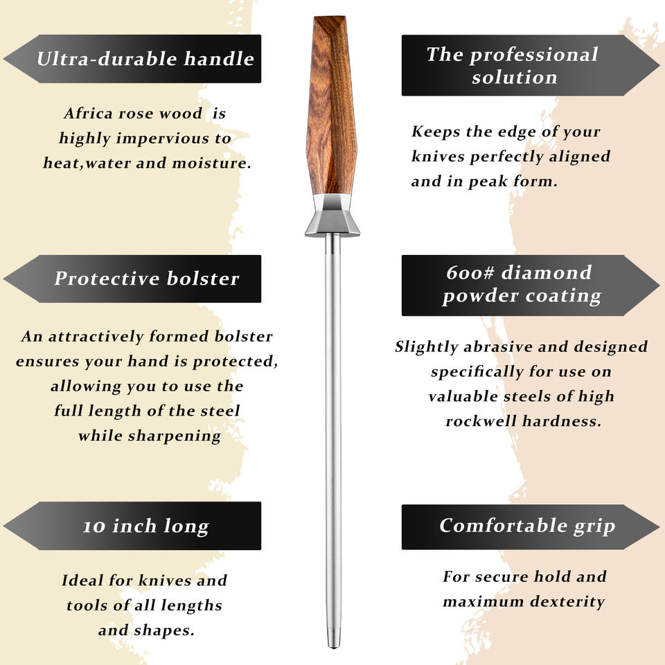 Aiguiseur de couteaux de 10 pouces, aiguiseur de couteaux de cuisine en diamant de haute qualité, aiguiseur moderne avec manche en bois de rose d'Afrique