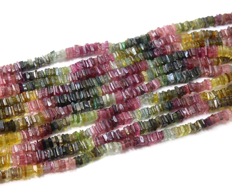 10 pouces de longueur lisse Heishi forme carrée pierres précieuses naturelles multi tourmaline perles en vrac en marron pour la fabrication de bijoux