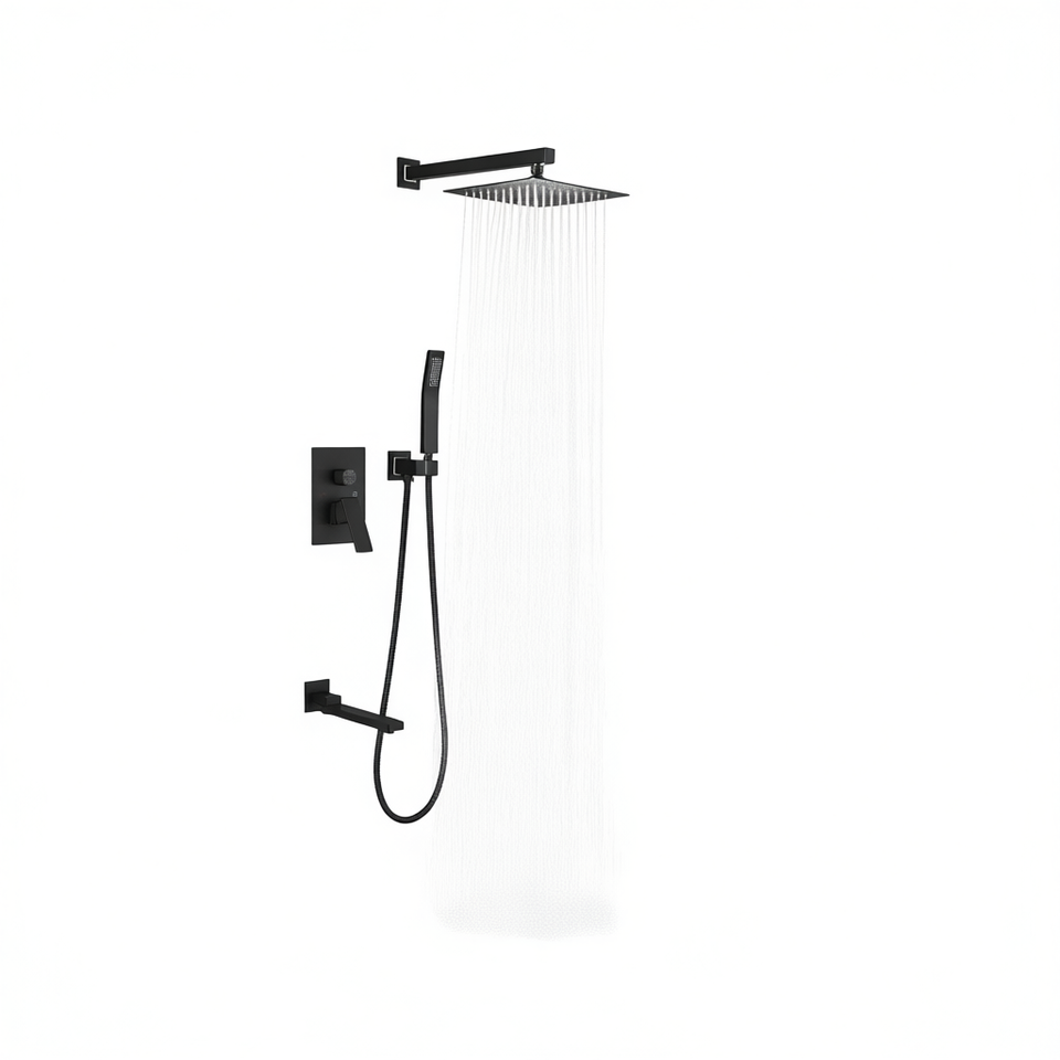 Ensemble de douche combiné carré 10 pouces avec mitigeur, finition noir mat, système de quincaillerie murale pour salle de bain