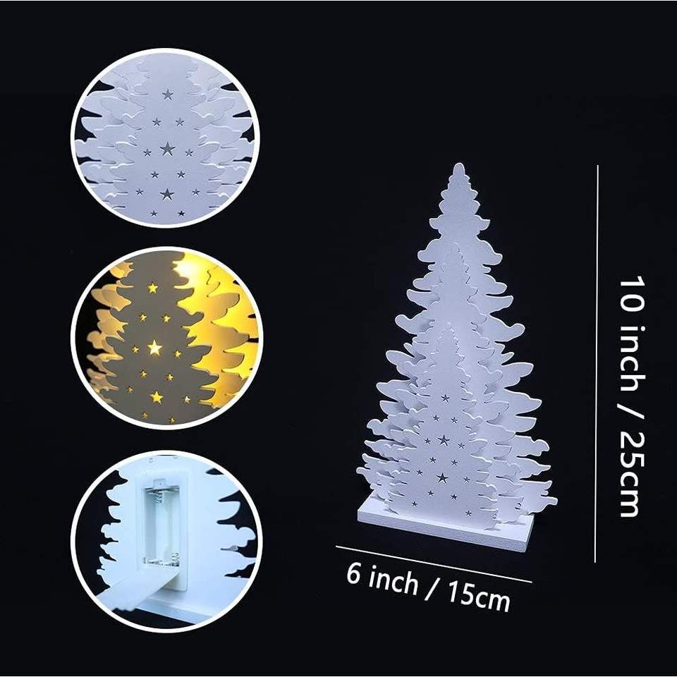 Sapin de Noël en bois de 10 pouces, décorations de Noël artisanales à LED, alimentées par piles AA, pour la décoration de la maison