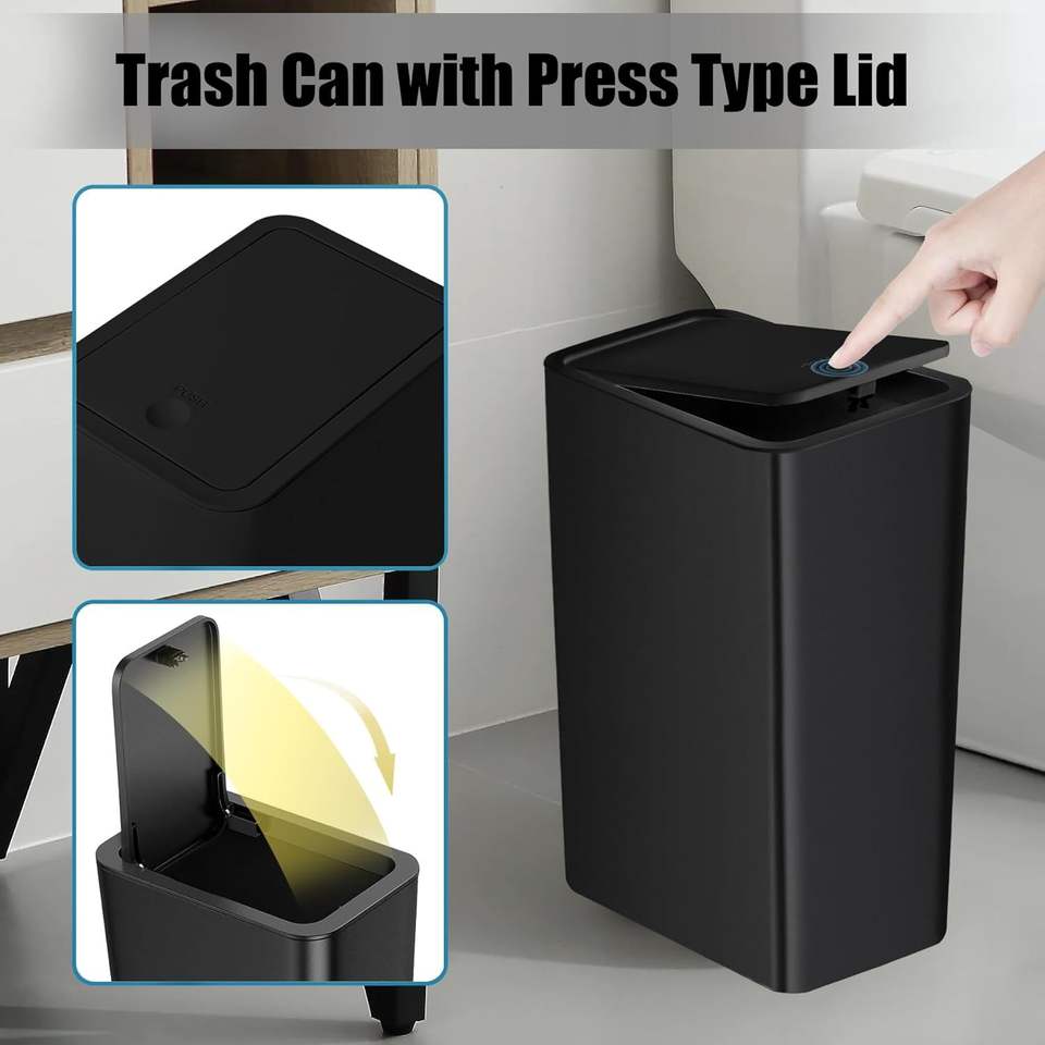 Poubelle à couvercle escamotable de 10 litres/2,6 gallons, petite poubelle pour la cuisine, la chambre, le salon, le bureau, durable et élégante
