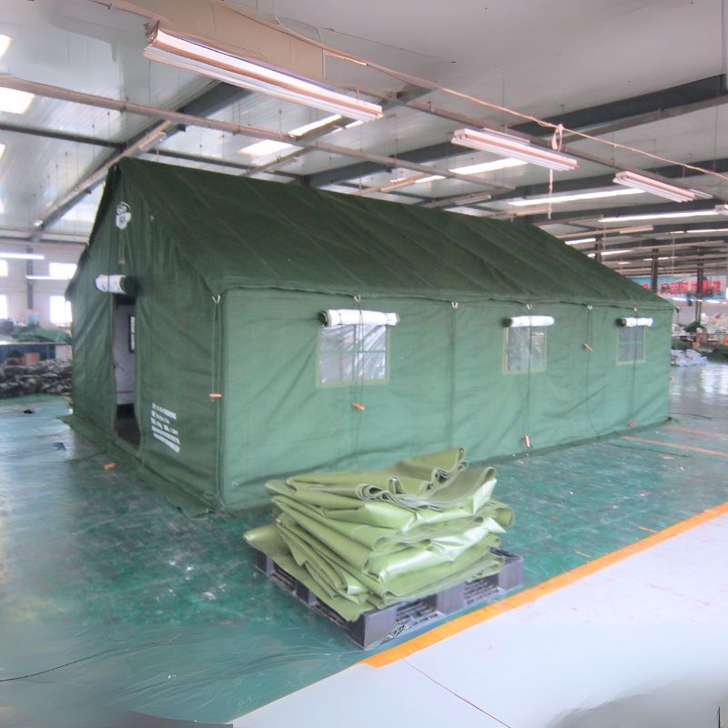 Tente en toile modulaire toutes saisons à cadre en acier 10 hommes avec option chauffante étanche à la neige pour les camps de terrain et les urgences