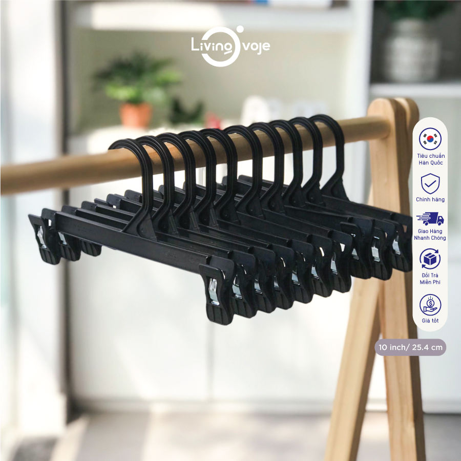 Lot de 10 cintres en plastique de 10 pouces avec pinces et patins en caoutchouc antidérapants pour l'organisation du placard