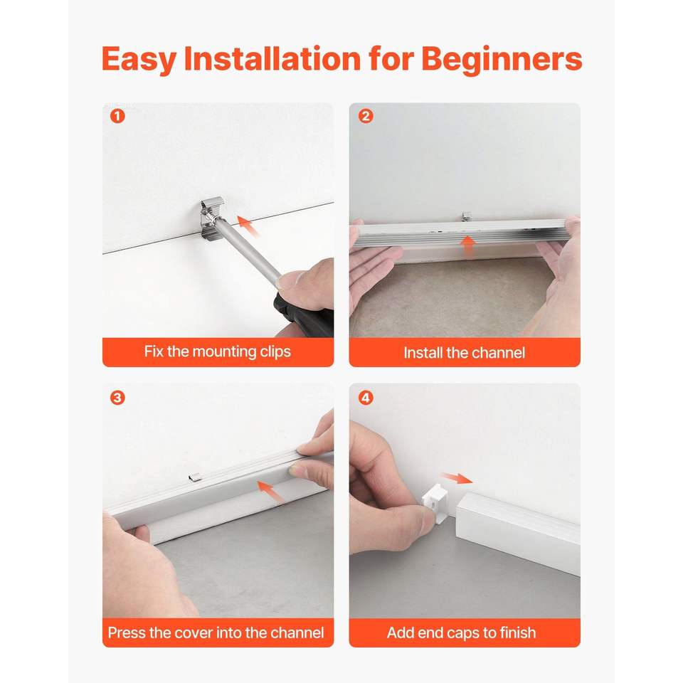 Lot de 10 profilés en aluminium LED en forme de U de 2 m (6,6 pi) avec couvercles laiteux, embouts et clips de fixation pour éclairage de plafond