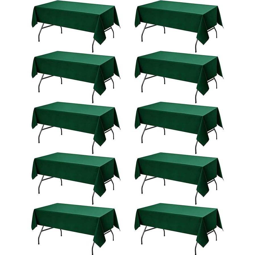 Lot de 10 nappes rectangulaires vert chasseur 60 x 84 pouces, tissu polyester résistant aux taches pour tables de 4 pieds