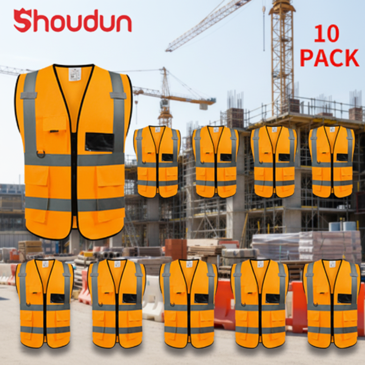Lot de 10 gilets de sécurité réfléchissants haute visibilité pour travaux routiers, course à pied, géomètres et agents de sécurité, vêtements de sécurité à fermetures éclair