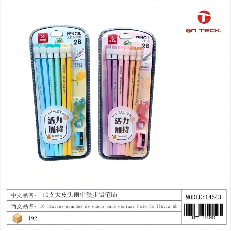 Crayons à mine HB On Teck Sa De Cv, lot de 10, pointe en cuir, pour la pluie, multicolores, outil d'écriture, usage bureautique 14543