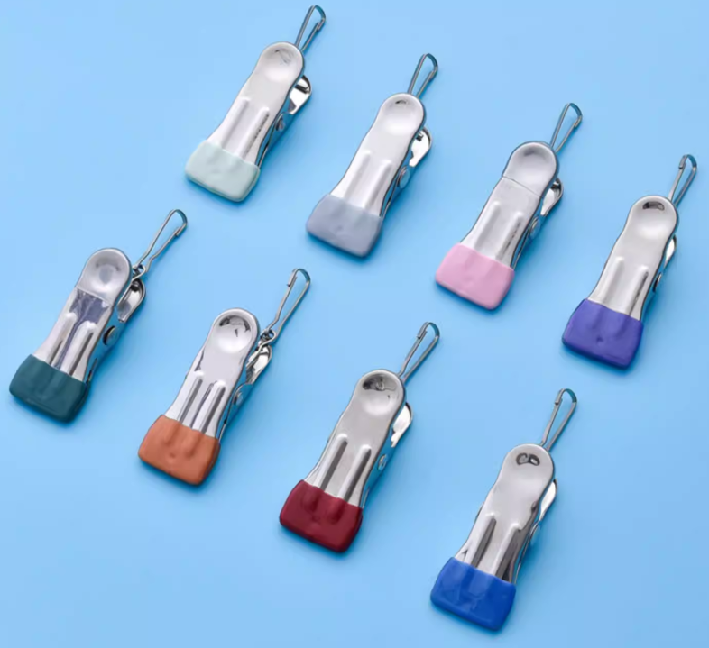 Lot de 10 pinces à linge avec anneaux antidérapants en acier inoxydable pour chaussettes, serviettes, sous-vêtements, gants, sacs de conservation alimentaire