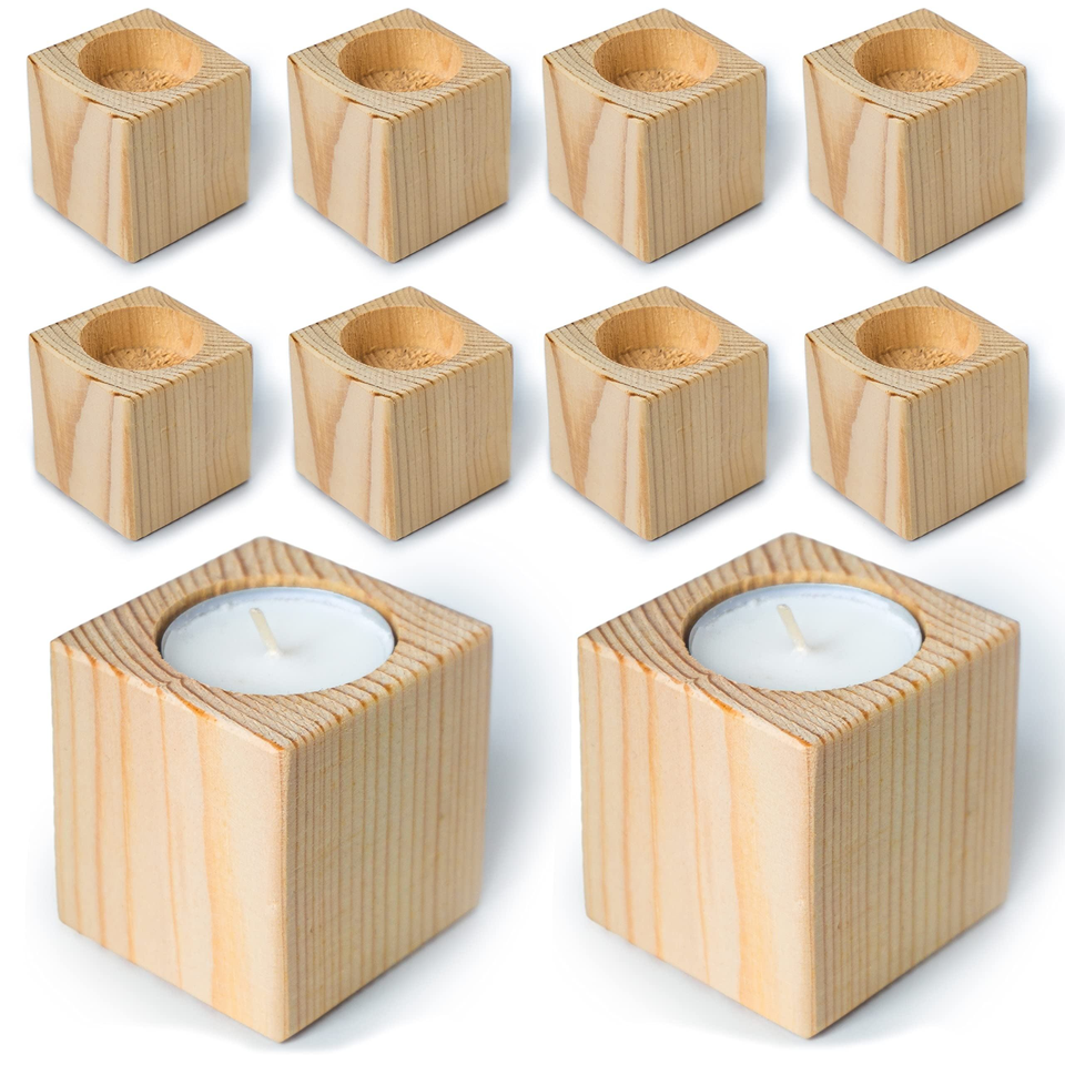 Lot de 10 supports en bois pour bougies chauffe-plat - Décoration rustique pour centre de table de mariage et cheminée