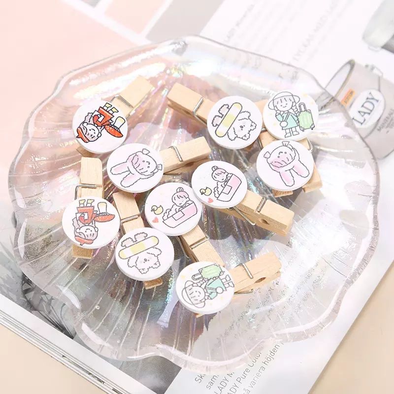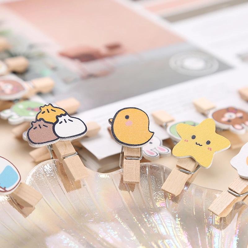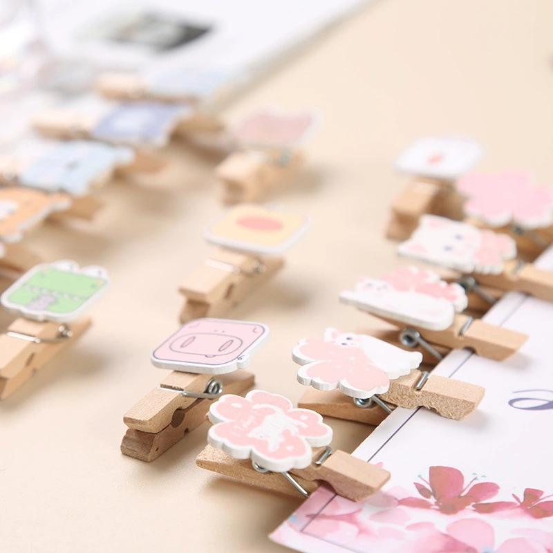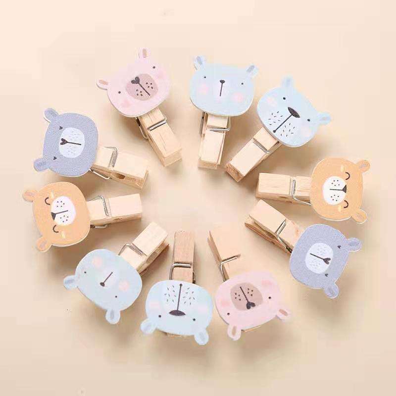 10 mini pinces à linge en bois en forme d'ours de dessin animé avec ficelle de jute pour photos, cartes et décoration murale