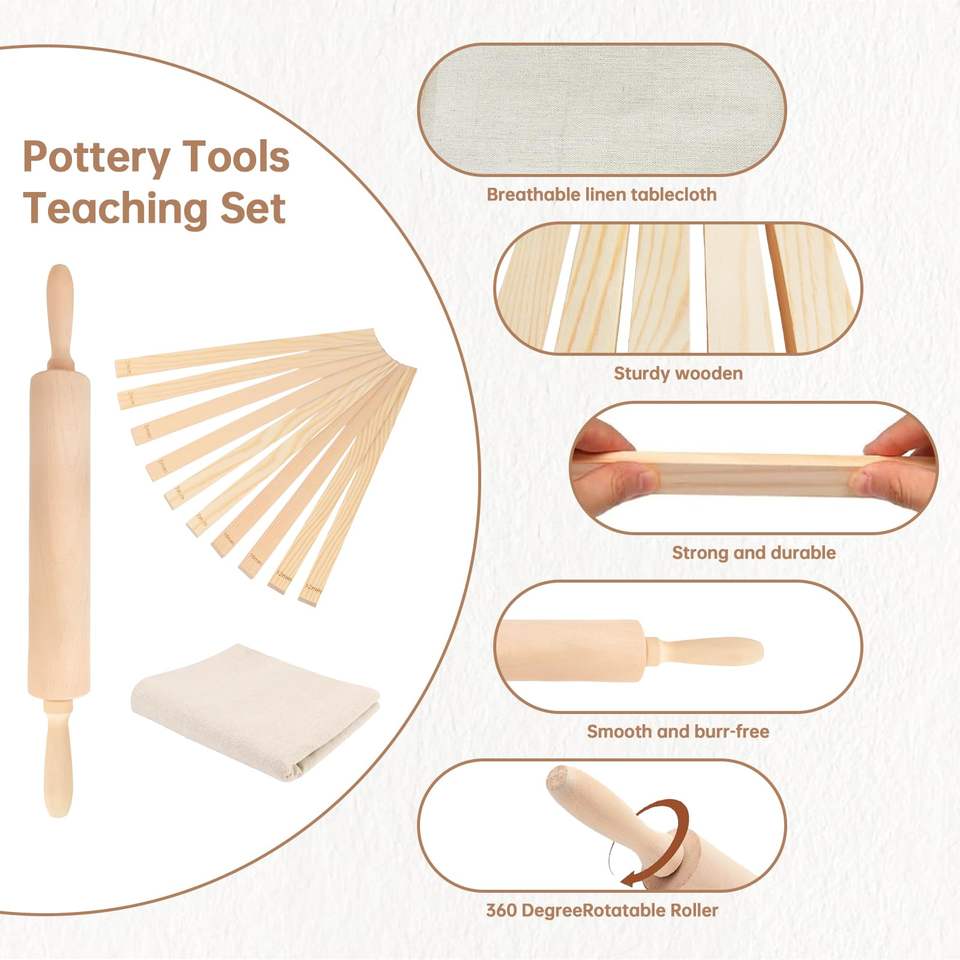 10 pièces poterie enseignement roulement boue bâton Guide outils 1 pièces poterie outils argile roulant Pinwith lin nappe