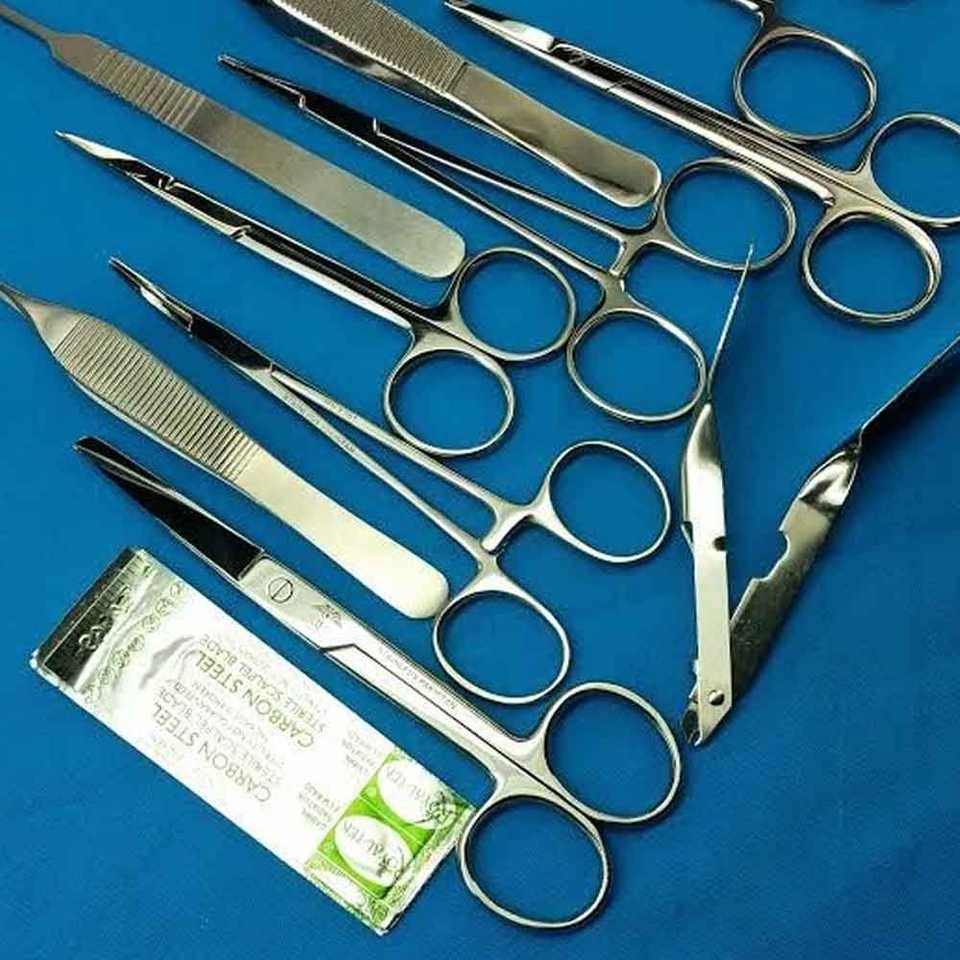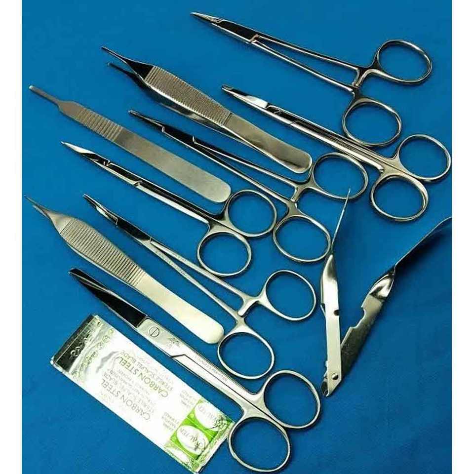 Kit de 10 instruments chirurgicaux manuels en acier inoxydable pour étudiants en médecine avec 5 lames pour sutures et lacérations # 10 Qualité supérieure CE