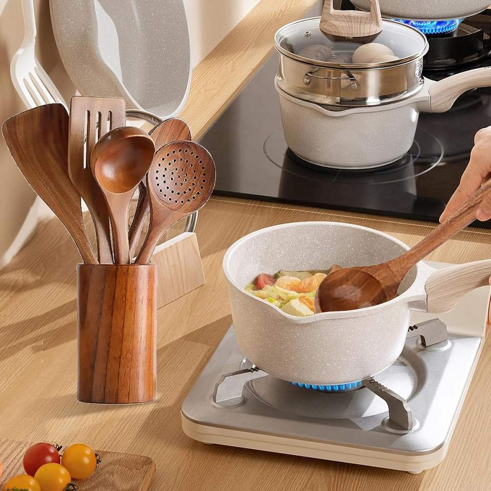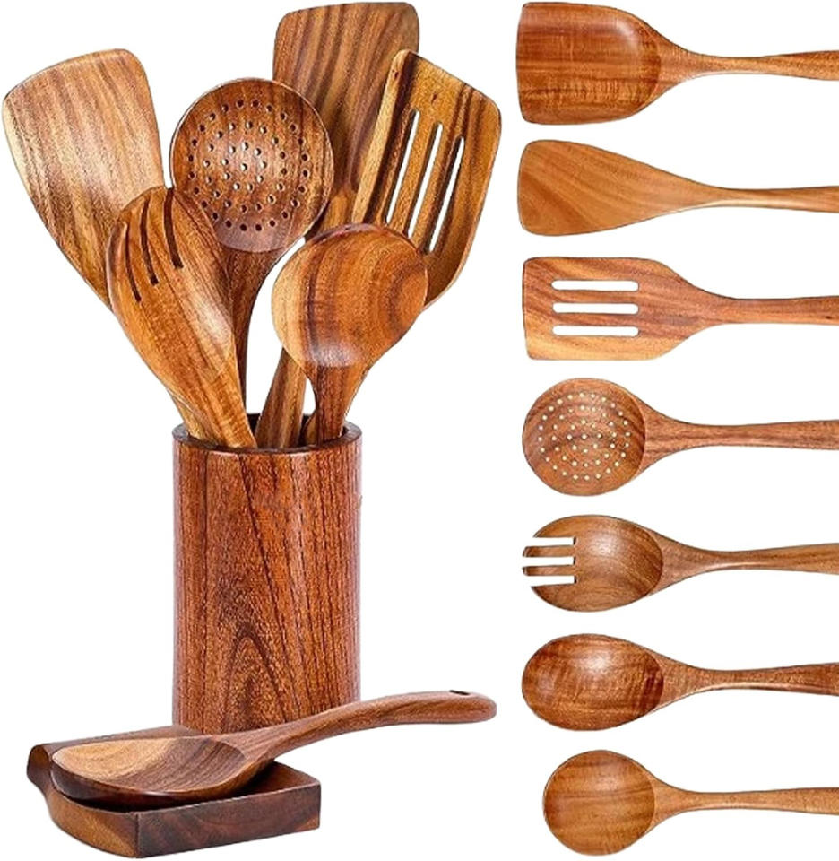 Ensemble de 10 ustensiles de cuisine en bois