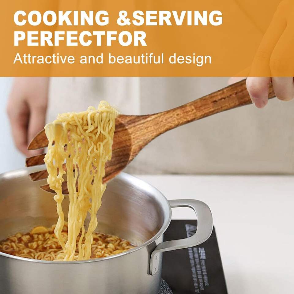 Ensemble de 10 ustensiles de cuisine en bois, spatule, louche, cuillère, fourchette, accessoires de cuisine résistants à la chaleur, kit de cuisine, ensemble d'ustensiles de cuisine