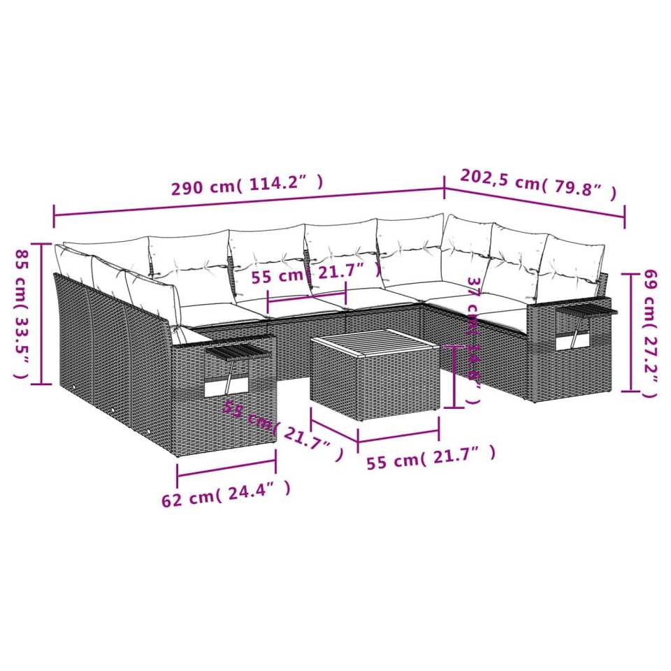 Ensemble de canapés de patio en polyrotin noir, 10 pièces, avec coussins, ensembles de jardin