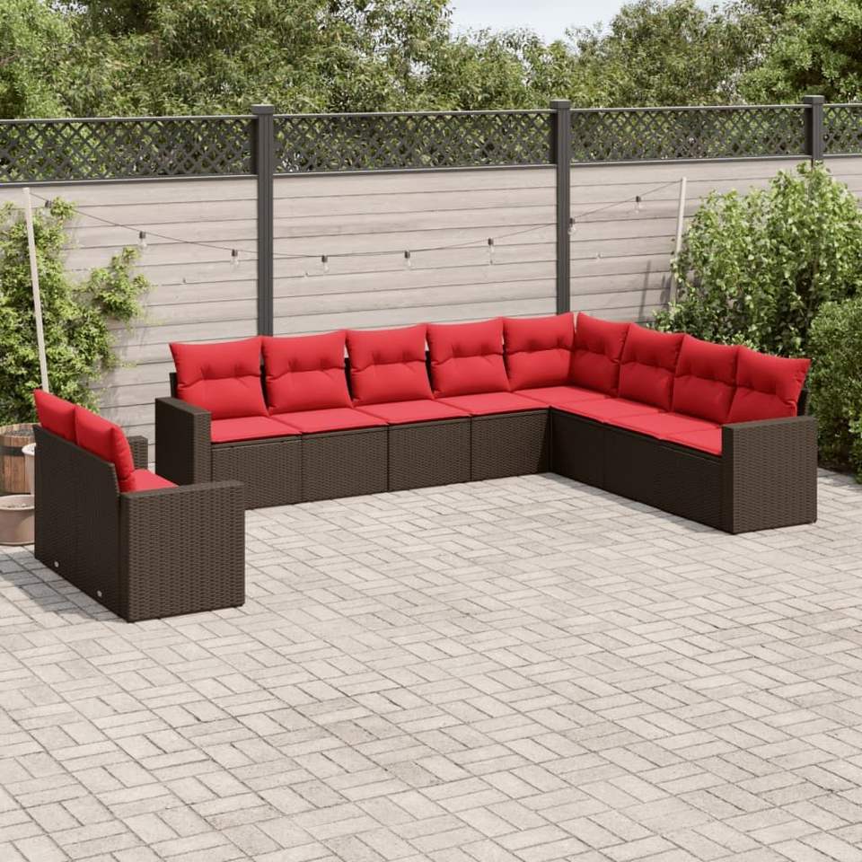Ensemble de canapés de patio en polyrotin marron, 10 pièces, avec coussins, ensembles de jardin