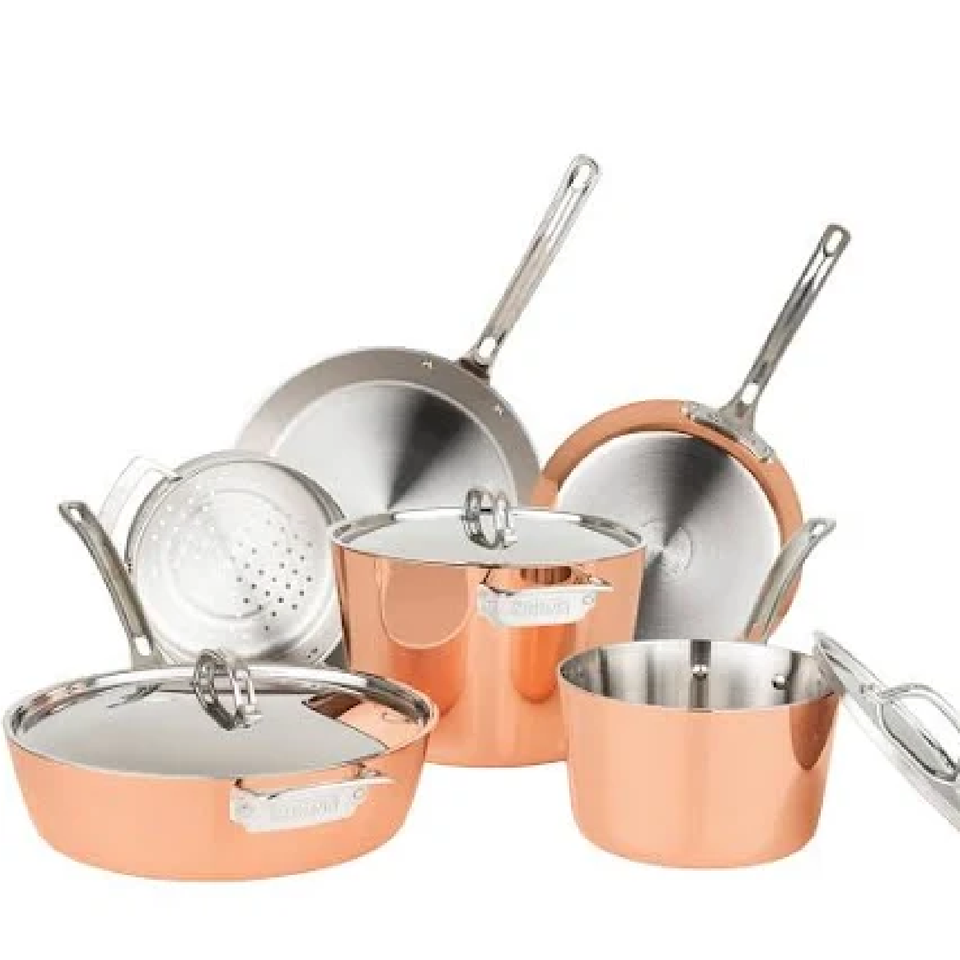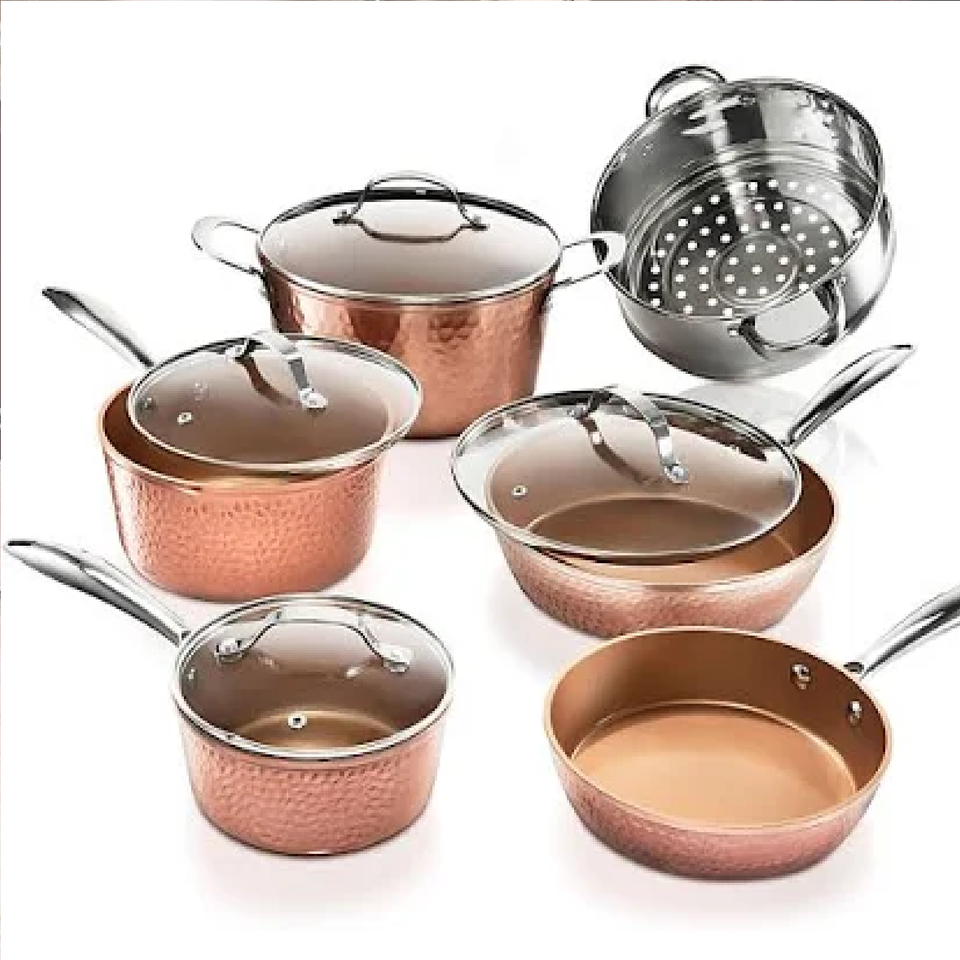 Batterie de cuisine en cuivre martelé 10 pièces, batterie de cuisine à domicile four soupe lait Steak marmite cuivre marmite casserole batterie de cuisine
