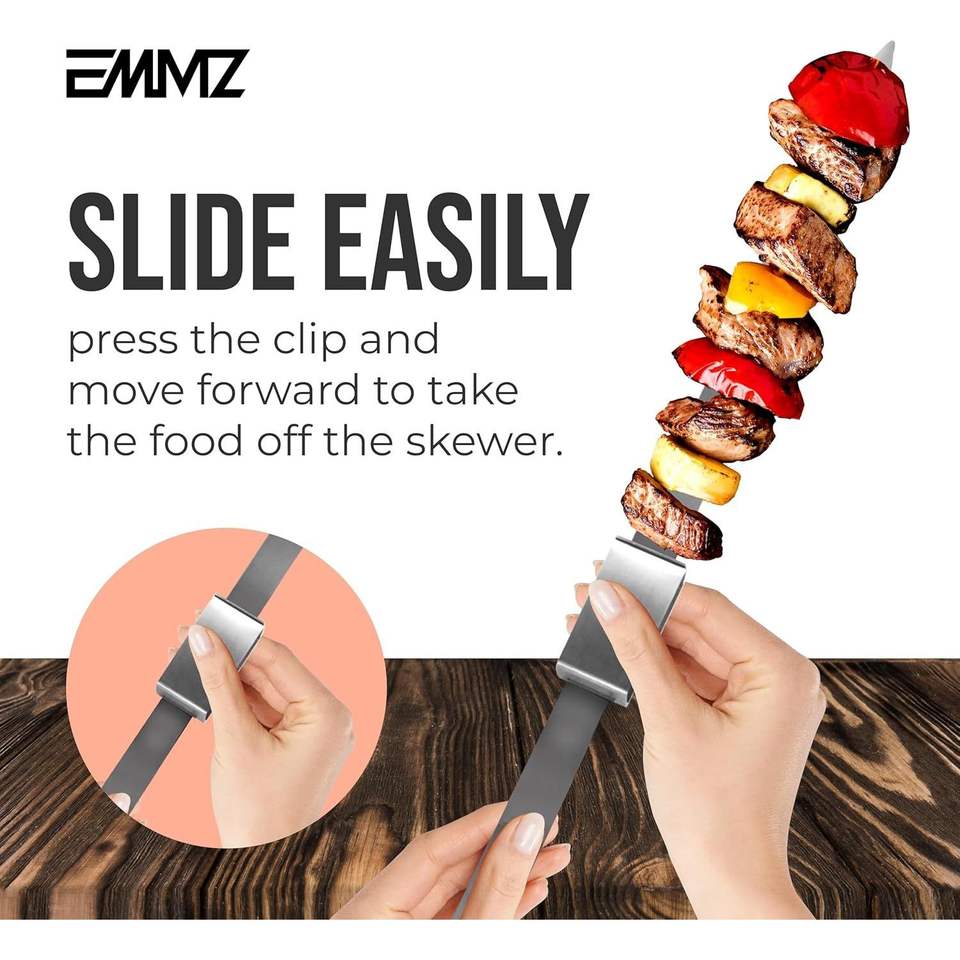 Ensemble de 10 brochettes de cuisson amovibles en acier inoxydable de 16,5 po, plates, en métal, pour barbecue, avec sac de rangement, pour kebab et shish kebab