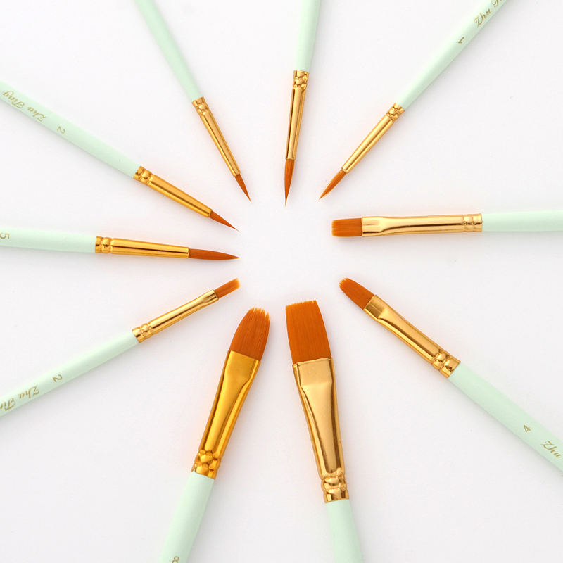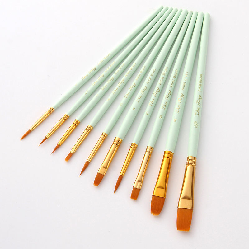 10 pinceaux ronds à pointe fine en nylon pour artistes, pour peinture acrylique, huile et aquarelle