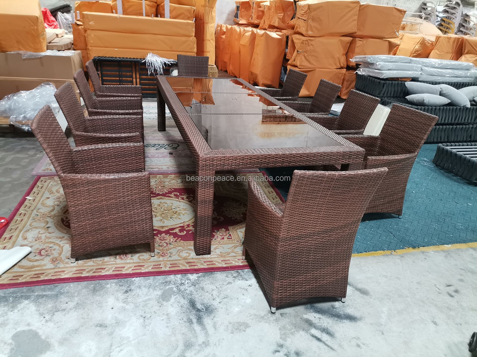 Ensemble de salon de réunion 10 places étanche Patio rotin meubles en osier extérieur jardin salle à manger ensemble extérieur Table et chaise ensemble