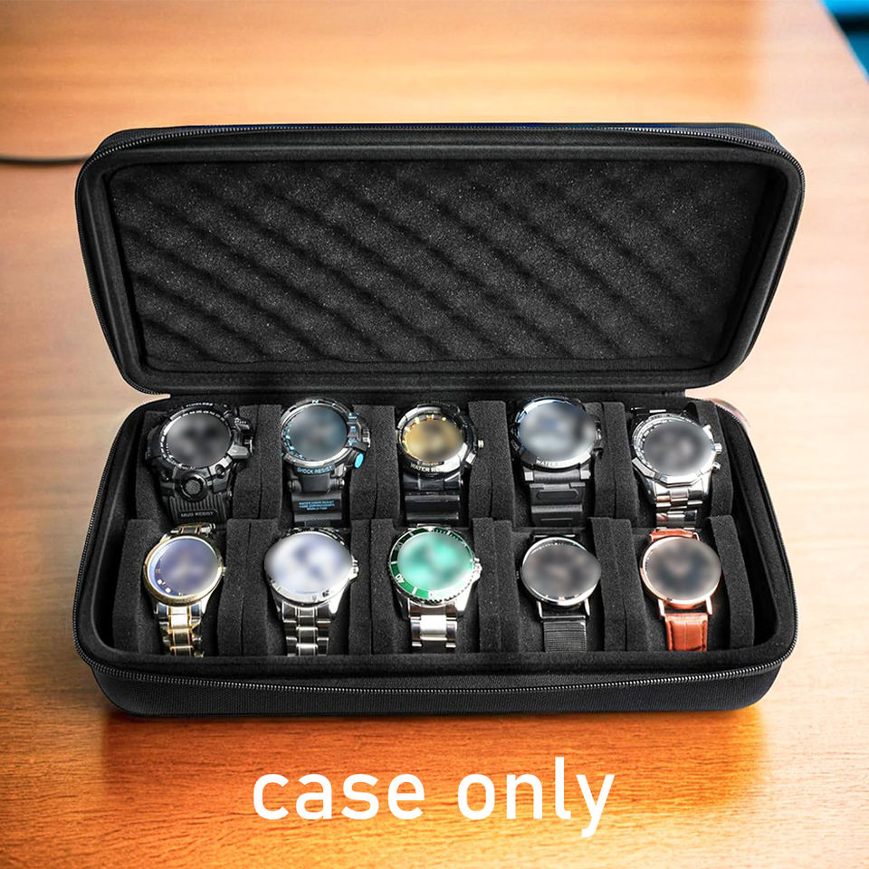 Étui de voyage pour montre portable à 10 fentes-Boîte de rangement rigide avec compartiments sécurisés pour montres jusqu'à 55mm-Étui uniquement