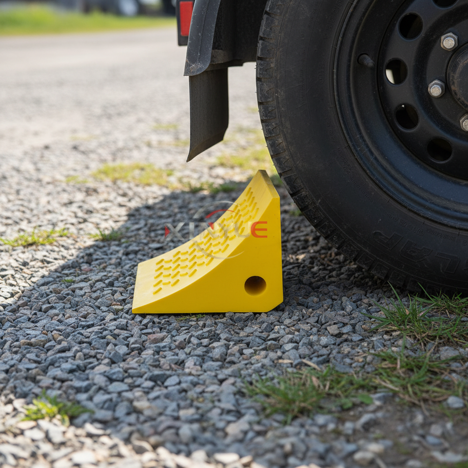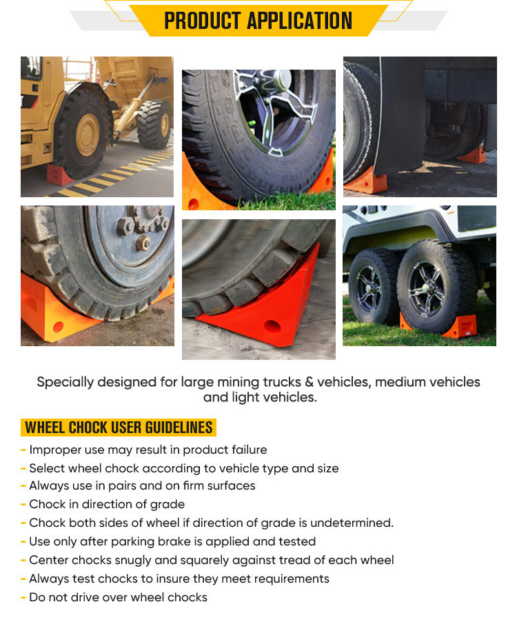 Cale de roue en polyuréthane de 10 tonnes pour camion, remorque et équipement de stationnement de véhicules miniers