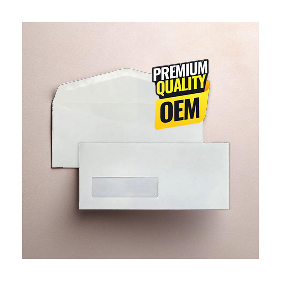Enveloppe professionnelle #10 blanche tissée avec fenêtre et joint humide, papier compatible avec la machine d'alimentation automatique, marque OEM, fabriquée en Malaisie
