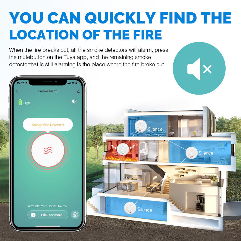 Détecteur de fumée sans fil interconnecté Wi-Fi avec batterie 10 ans, alarme 85 dB, matériau ABS, 433 MHz