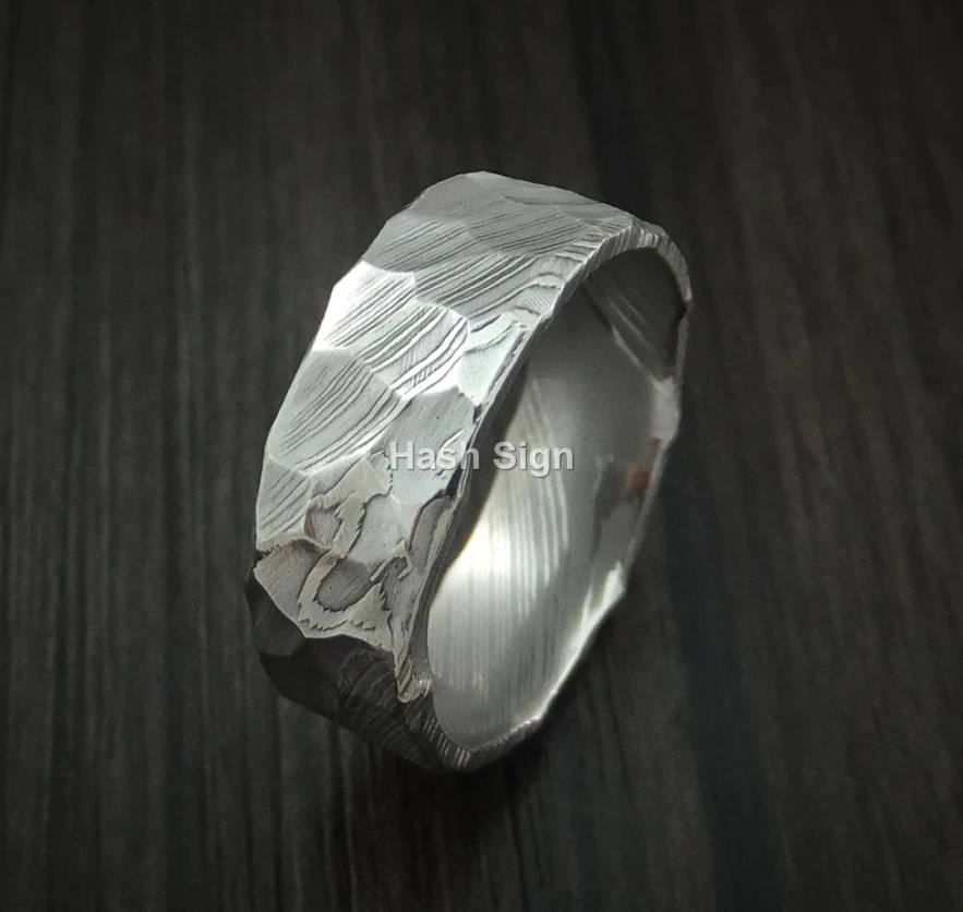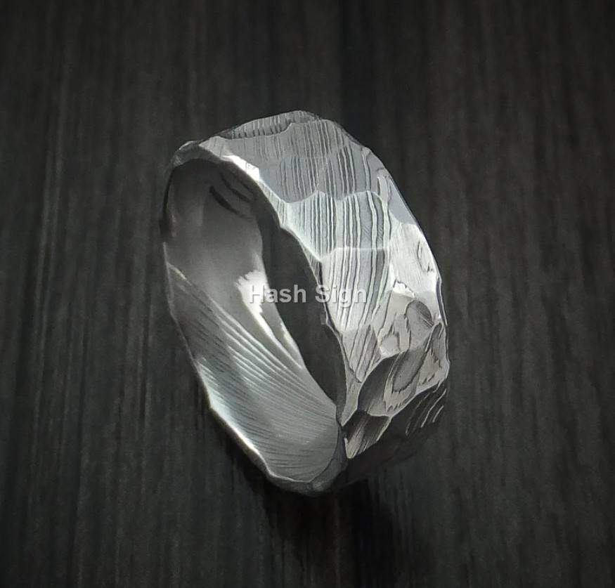 10 mm marteau roche finition personnalisé damas acier hommes femmes bague à la main avec boîte anneaux de mariage anneaux cadeaux