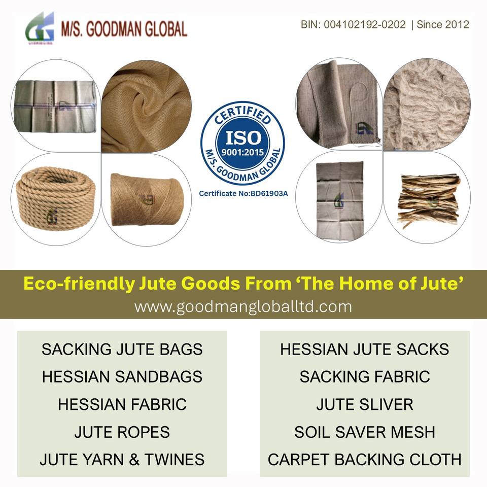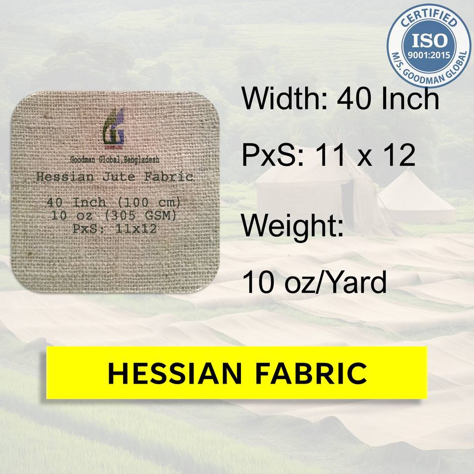 Toile de jute de 40 pouces de large, 10 oz, 100 % biodégradable, pour sacs, usage polyvalent, vente en gros, Goodman Global Bangladesh