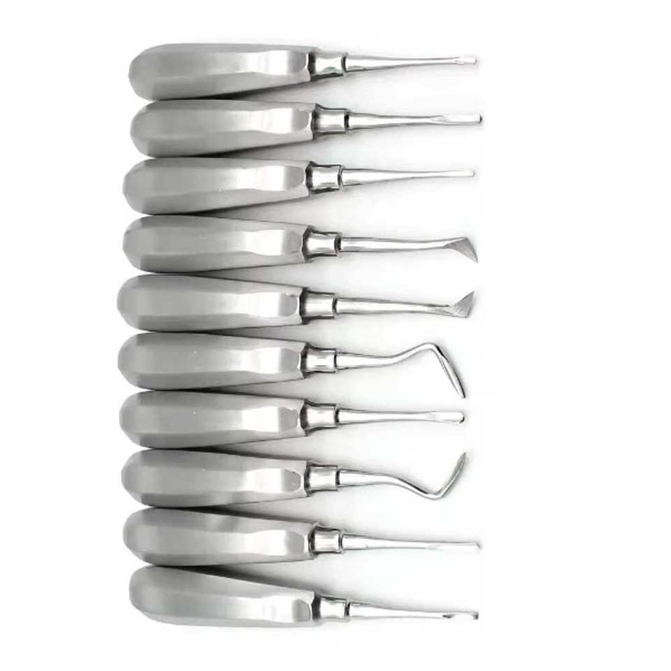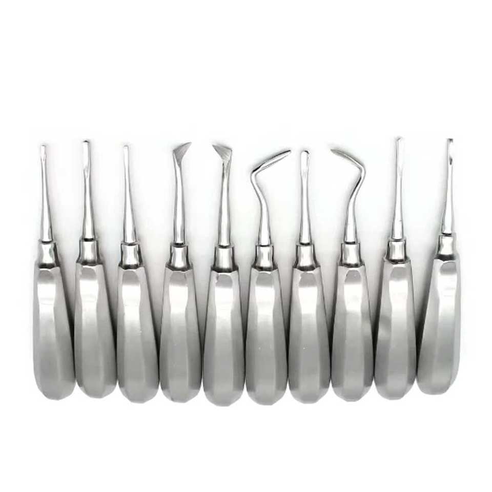 Lot de 10 élévateurs dentaires manuels en acier inoxydable pour extraction de dents, kit d'instruments pour dentistes, certifié MOL CE USA