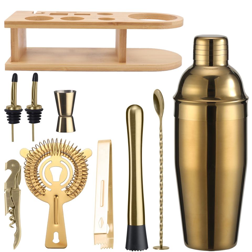Ensemble de mélangeurs à Cocktail 10 pièces Ensemble complet de mélangeurs à Cocktail en acier inoxydable à manivelle Équipement professionnel de mélange de Cocktail