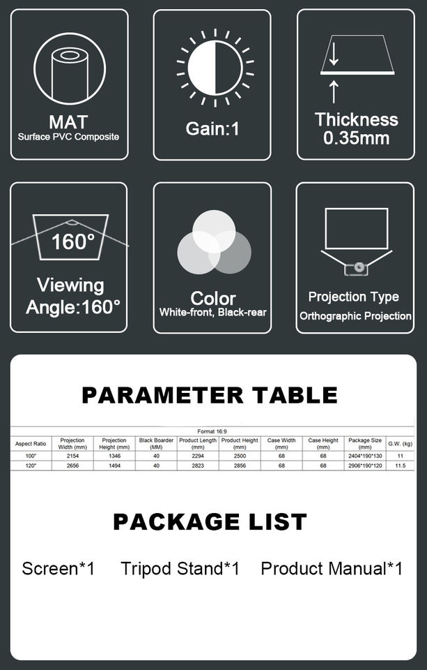 Nom du produit:WUPRO trépied écran de projecteur