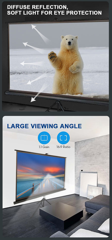 Écran de projection portable pour extérieur, support de trépied, écran ALR doux mat blanc bon marché Wupro/OEM, 100/120/150 pouces