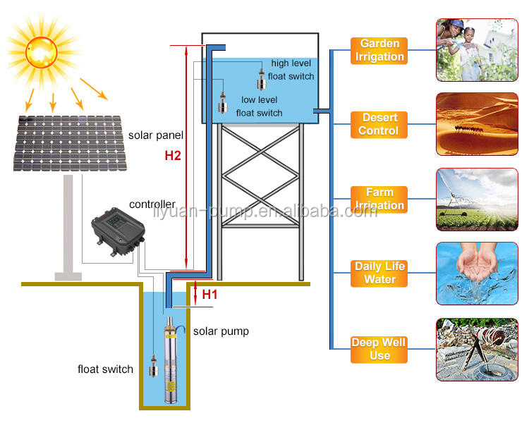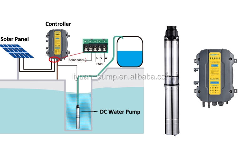 Pompe solaire submersible à hauteur de refoulement maximale de 100-300 m, pompes solaires pour puits d'eau, système de pompage d'eau solaire pour puits profonds