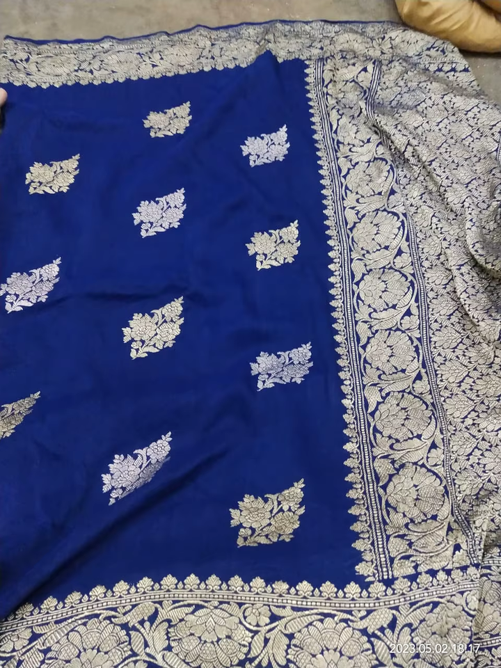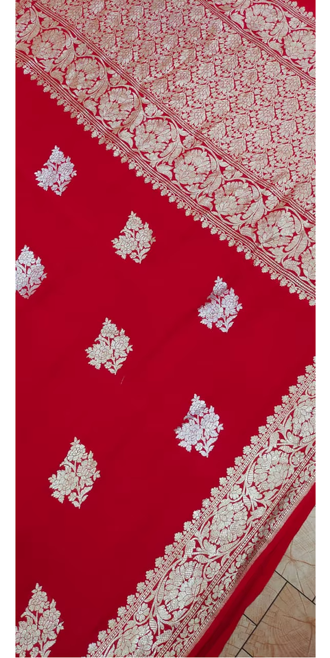Sari Kadhwan en Chiffon Pur Monga 100% Authentique, Tissé à la Main, avec Tissage Intricaté Sona Rupa Buta, Luxe Traditionnel pour Fêtes
