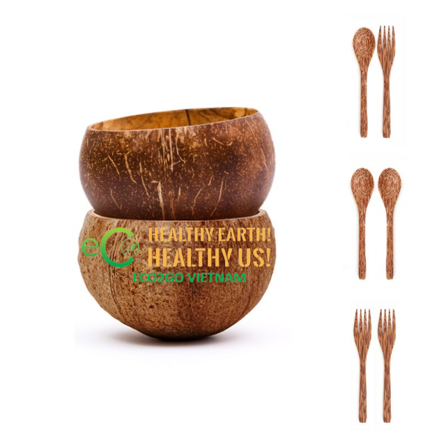 100% bols en coquille de noix de coco biodégradables avec cuillère ensemble de bols à smoothie d'été écologiques fabriqués à la main au Vietnam