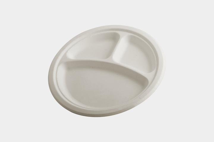Assiettes en bagasse de canne à sucre 100% biodégradables avec un design robuste, résistantes à la chaleur, parfaites pour les plats à emporter et les événements en plein air