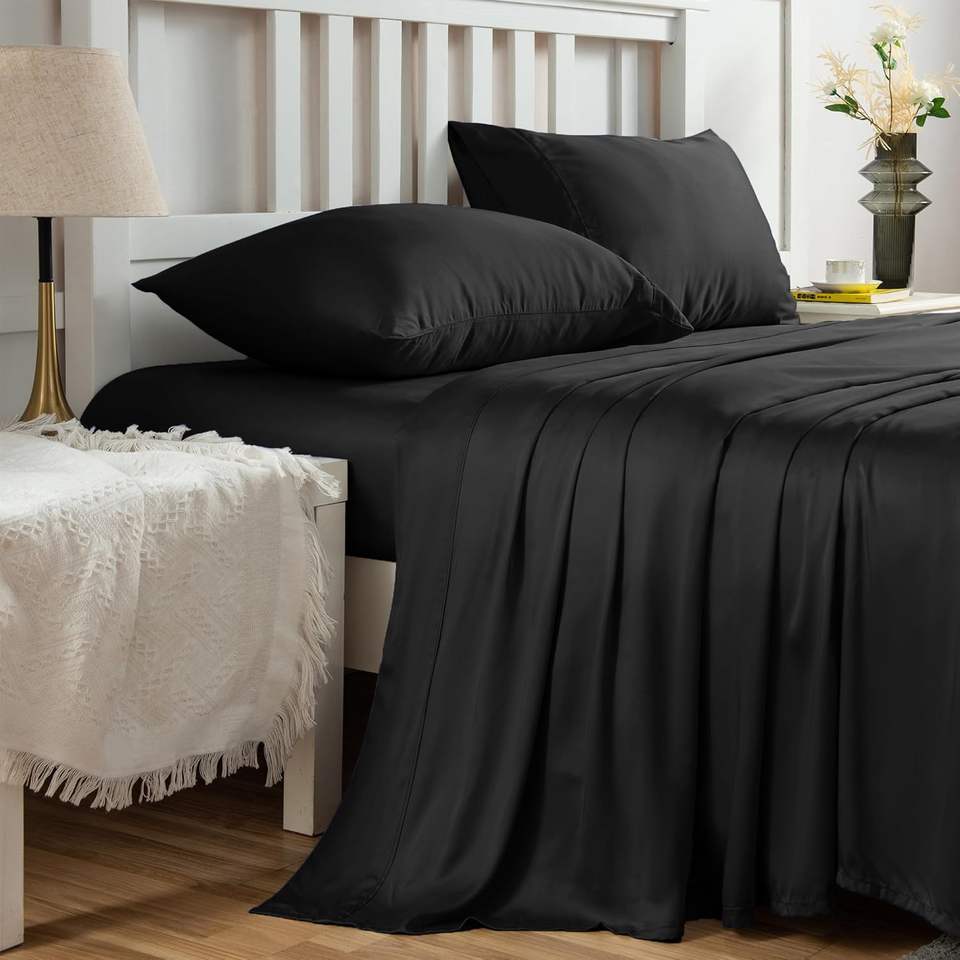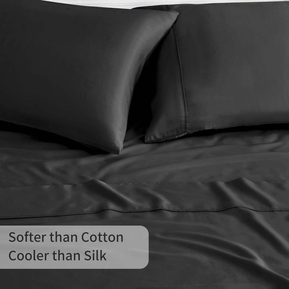 100% ensemble de draps en bambou de refroidissement pour les dormeurs chauds drap-housse évacuant l'humidité avec poche profonde de 40cm draps de literie doux et soyeux