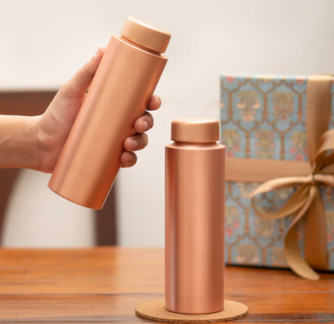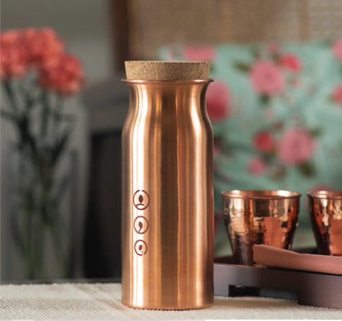 100% bouteille en cuivre et carafe martelé bouteille d'eau finie pour la maison voyage sport ustensiles de cuisine sur bas prix de l'Inde