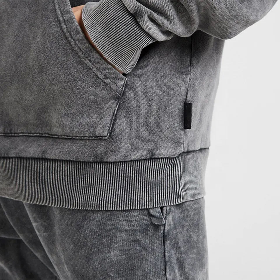 100% coton lavé à l'acide récolte sweat à capuche zippé survêtement femmes broderie Patch flare survêtements empilés