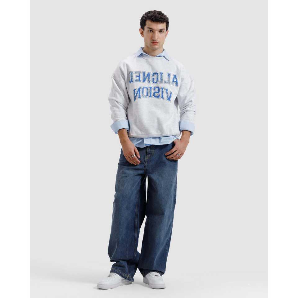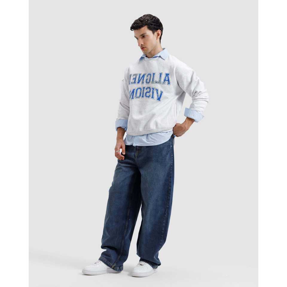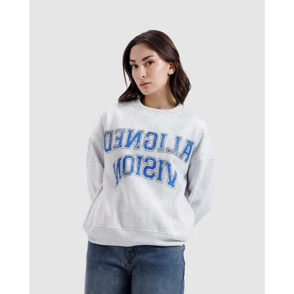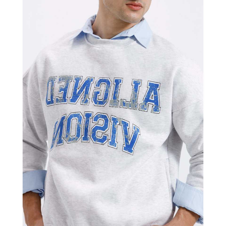 Sweat-shirt surdimensionné 100 % coton Aligned Vision en molleton bouclette avec étiquette personnalisée imprimée, durabilité organique